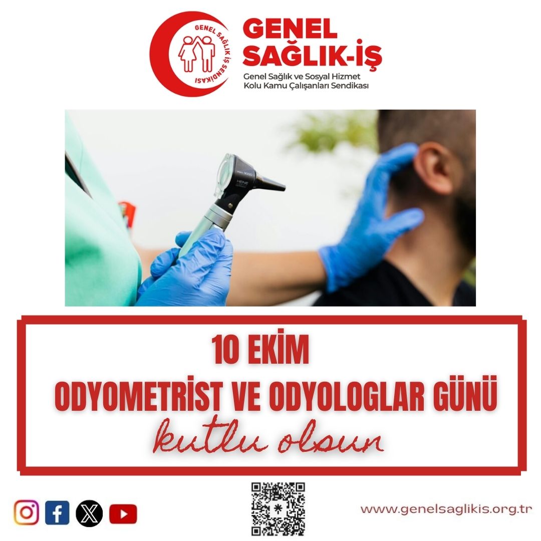 Sağlık emekçilerinin insan onuruna yaraşır yaşam ve çalışma koşullarına kavuştuğu günleri birlikte yaratmak inancıyla; işitme kayıplarının teşhisi, tedavi süreçleri ve rehabilitasyon aşamalarında özveriyle çalışan tüm odyometrist ve odyologlara teşekkür ediyor, 10 Ekim Odyometrist ve Odyologlar Gününü kutluyoruz.