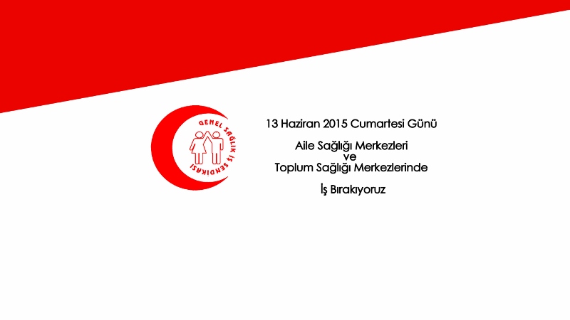 Genel Sağlık- İş Merkez Yönetim Kurulu 08.06.2015 tarih ve 67-1 sayılı kararı ile Aile Sağlığı Merkezlerinde ve Toplum Sağlığı Merkezlerinde çalışanlara fazla ve esnek çalışma dayatmasının ceza puanı baskısıyla devam etmesi nedeniyle haklı mücadeleyi kararlılıkla devam ettirmek için 13 Haziran 2015 Cumartesi günü ülke genelinde Aile Sağlığı ve Toplum Sağlığı Merkezlerinde fazla ve esnek çalışma dayatmasına karşı iş bırakma eylemi yapılmasına karar verilmiştir. Tüm üyelerimizi eyleme katılmaya çağırıyoruz.