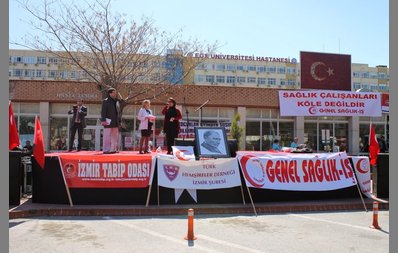 14 Mart Cuma günü Ege Üniversitesi Tıp Fakültesi Hastane bahçesin'de hazırladığımız kürsü'de sorunlarımızı sağlık çalışanları ve vatandaşlarla paylaştık. Birleşik Kamu-iş Konferadasyonu Eğitim sekreteri Nejla Kendigelen BAŞTAN İzmir Tabip Odası yönetim kurulu üyesi Dr Ayşenur OKTAY Türk Hemşireler Derneği İzmir Şube Başkanı Süheyla NERGİZ Genel Sağlık-iş Şube Başkanı Dr. Serdar SAVACI yaptıkları konuşmalarda sağlık çalışanları'nın sorunlarını dile getirdiler.Etkinliğimiz gün boyu Müzik yayını şiir ve halaylarla sürdü.