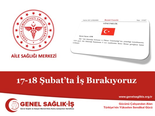 Aile Hekimliği Sözleşme ve Ödeme Yönetmeliği'nin geri çekilmesi, aile hekimliği çalışanlarının özlük haklarında iyileştirme yapılması ve aile sağlığı merkezi gider ödeneklerinin artırılması talepleriyle iş bırakıyoruz.