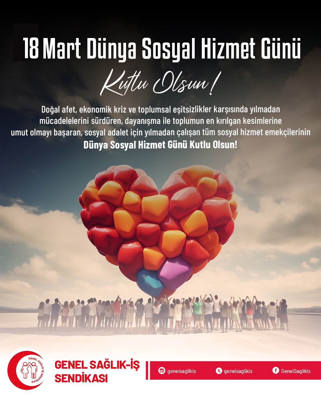 Doğal afet, ekonomik kriz ve toplumsal eşitsizlikler karşısında yılmadan mücadelelerini sürdüren, dayanışma ile toplumun en kırılgan kesimlerine umut olmayı başaran, sosyal adalet için yılmadan çalışan tüm sosyal hizmet emekçilerinin Dünya Sosyal Hizmet Günü Kutlu Olsun!
