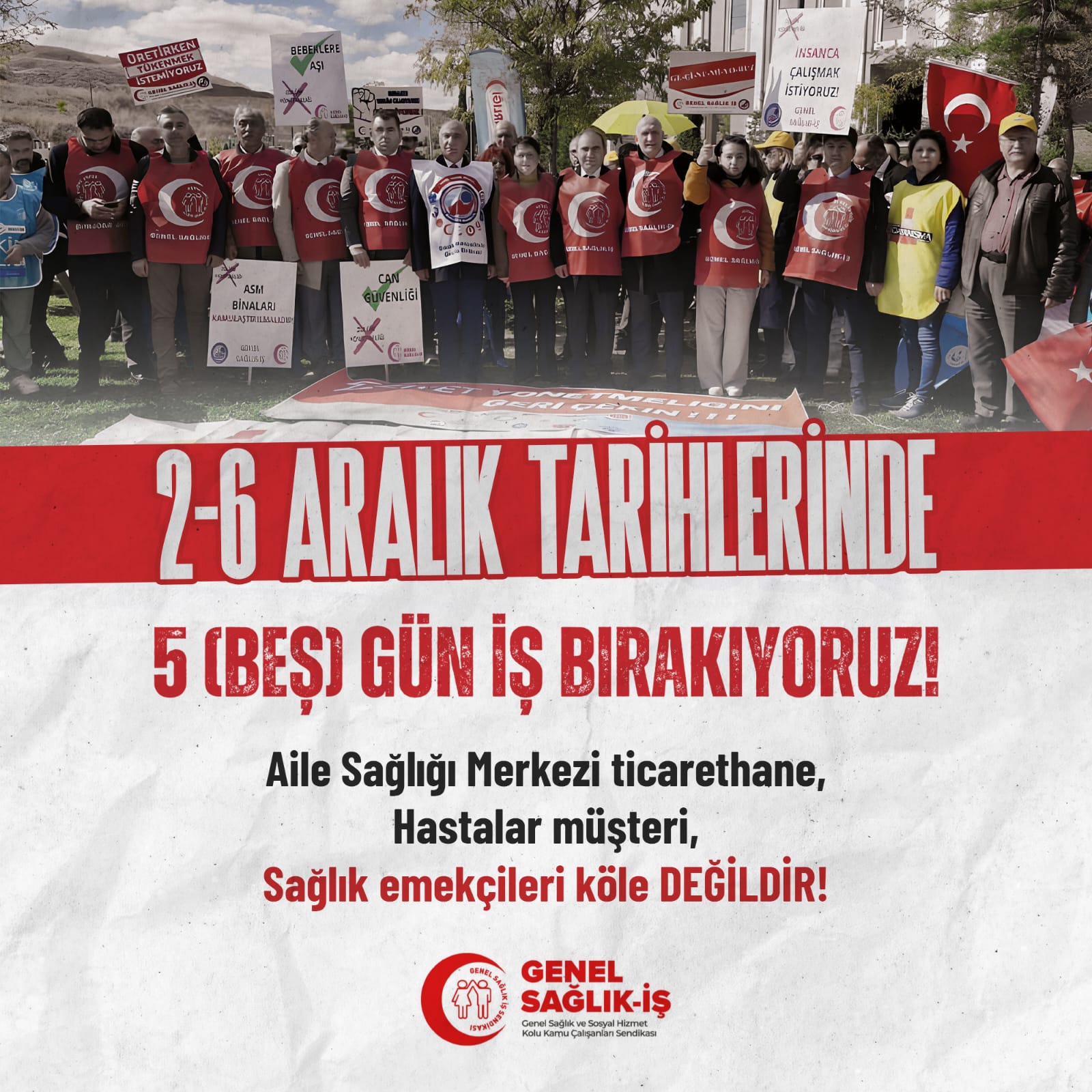 2-6 Aralık tarihlerinde 5 (Beş) Gün İş Bırakıyoruz! Aile Sağlığı Merkezi ticarethane, hastalar müşteri, sağlık emekçileri köle değildir!