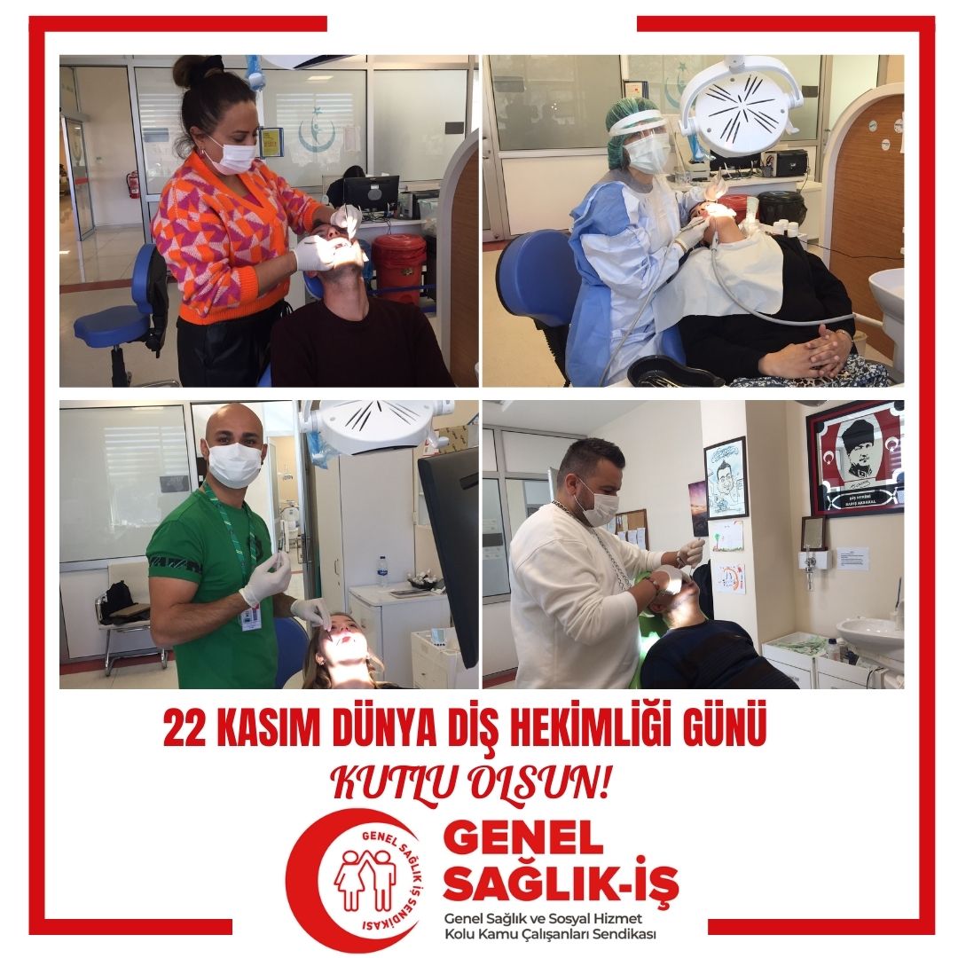 Sendikamız Genel Sağlık-İş olarak, yurttaşlarımızın ağız ve diş sağlığının korunması, iyileştirilmesi ve tedavinin gerçekleştirilmesinde görev alan; ağız ve diş sağlığı merkezlerinde, ağız ve diş sağlığı hastanelerinde ve hastanelerin diş kliniklerinde görevli tüm sağlık çalışanlarının 22 Kasım Diş Hekimliği Gününü kutlarız.