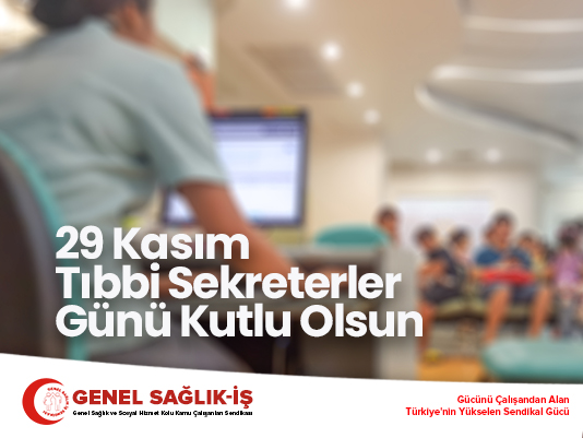 Sağlık emekçilerinin insan onuruna yaraşır yaşam ve çalışma koşullarına kavuştuğu günleri birlikte yaratmak inancıyla; tüm tıbbi sekreterlerin 29 Kasım Tıbbi Sekreterler Gününü kutluyoruz.