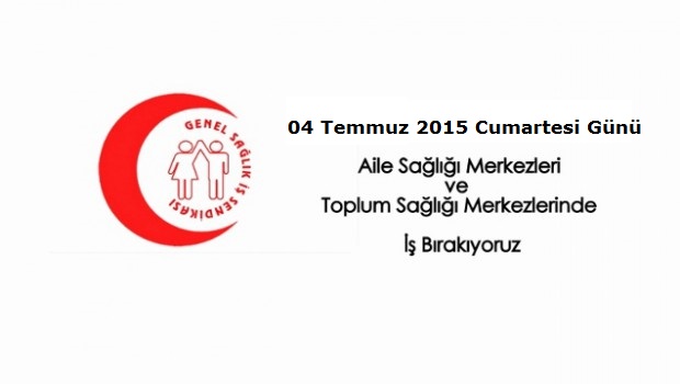 Genel Sağlık- İş Merkez Yönetim Kurulu 29.06.2015 tarih ve 73-1 sayılı kararı ile Aile Sağlığı Merkezlerinde ve Toplum Sağlığı Merkezlerinde çalışanlara fazla ve esnek çalışma dayatmasının ceza puanı baskısıyla devam etmesi nedeniyle haklı mücadeleyi kararlılıkla devam ettirmek için 04 Temmuz 2015 Cumartesi günü ülke genelinde Aile Sağlığı ve Toplum Sağlığı Merkezlerinde fazla ve esnek çalışma dayatmasına karşı iş bırakma eylemi yapılmasına karar verilmiştir.