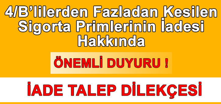 4B'lilerden Fazladan Kesilen Sigorta Primlerinin İadesi Hakkında Önemli Duyuru!