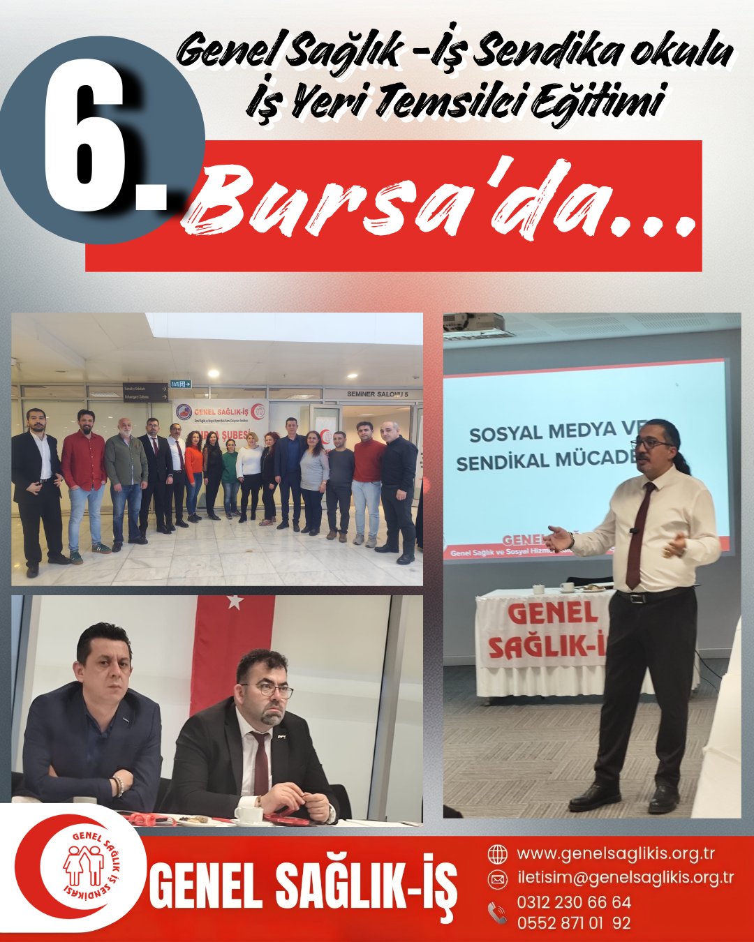 Genel Sağlık-İş Sendika okulu temsilciler eğitimimizin altıncısını Bursa’da gerçekleştirdik. Örgütlenme sürecimizin önemli ayaklarından biri olan bu eğitim çalışması, temsilcilerimizin sendikal bilgi ve mücadele birikimini güçlendirmeyi hedeflemektedir.