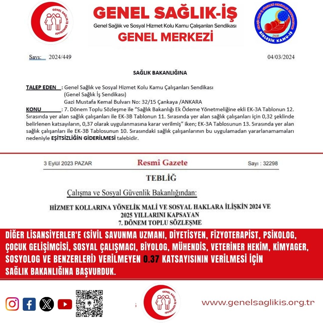 benzerleri)” lehine giderilerek, söz edilen sağlık çalışanlarının 0,37