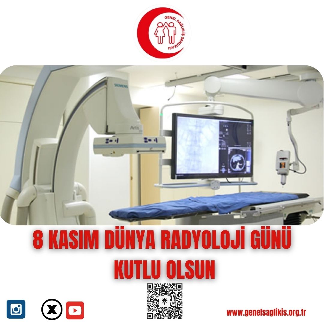 Tıbbi görüntüleme, sağlık hizmetlerindeki ilerici disiplinlerden biri, teknolojik ve biyolojik araştırmalar açısından tıbbi tanı ve tedavinin oluşmasında büyük bir faaliyet alanıdır. Radyolojinin güvenli hasta bakımına sağladığı değere ilişkin farkındalığın arttığı ve radyologlar ile radyoloji teknisyenlerinin sağlık hizmetleri sürecinde oynadıkları hayati role ilişkin anlayışın geliştiği, tüm radyoloji çalışanlarının insanca yaşam ve çalışma koşullarına kavuştuğu günleri birlikte yaratmak umudu ile 8 Kasım Dünya Radyoloji Gününü kutlarız.