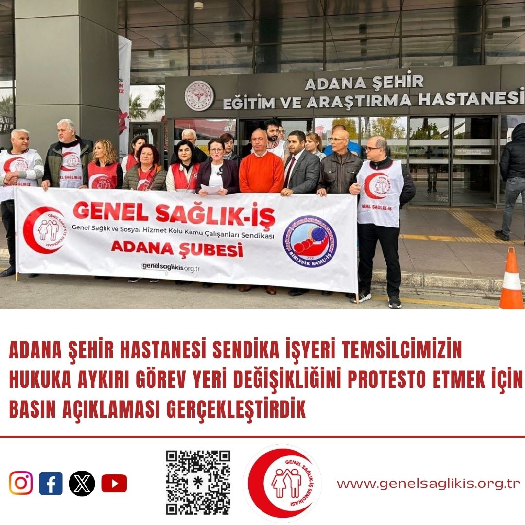 Genel Sağlık-İş Genel Başkanı Derya Uğur, yaptığı konuşmada “Bugün burada Adana