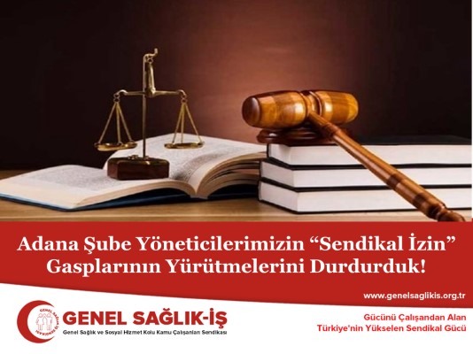 Sendikamız Genel Sağlık-İş tarafından Adana Şube Yöneticilerine “derhal” hukuki destek verilerek “yürütmenin durdurulması” talepli 3 İPTAL DAVASI açılmıştır.