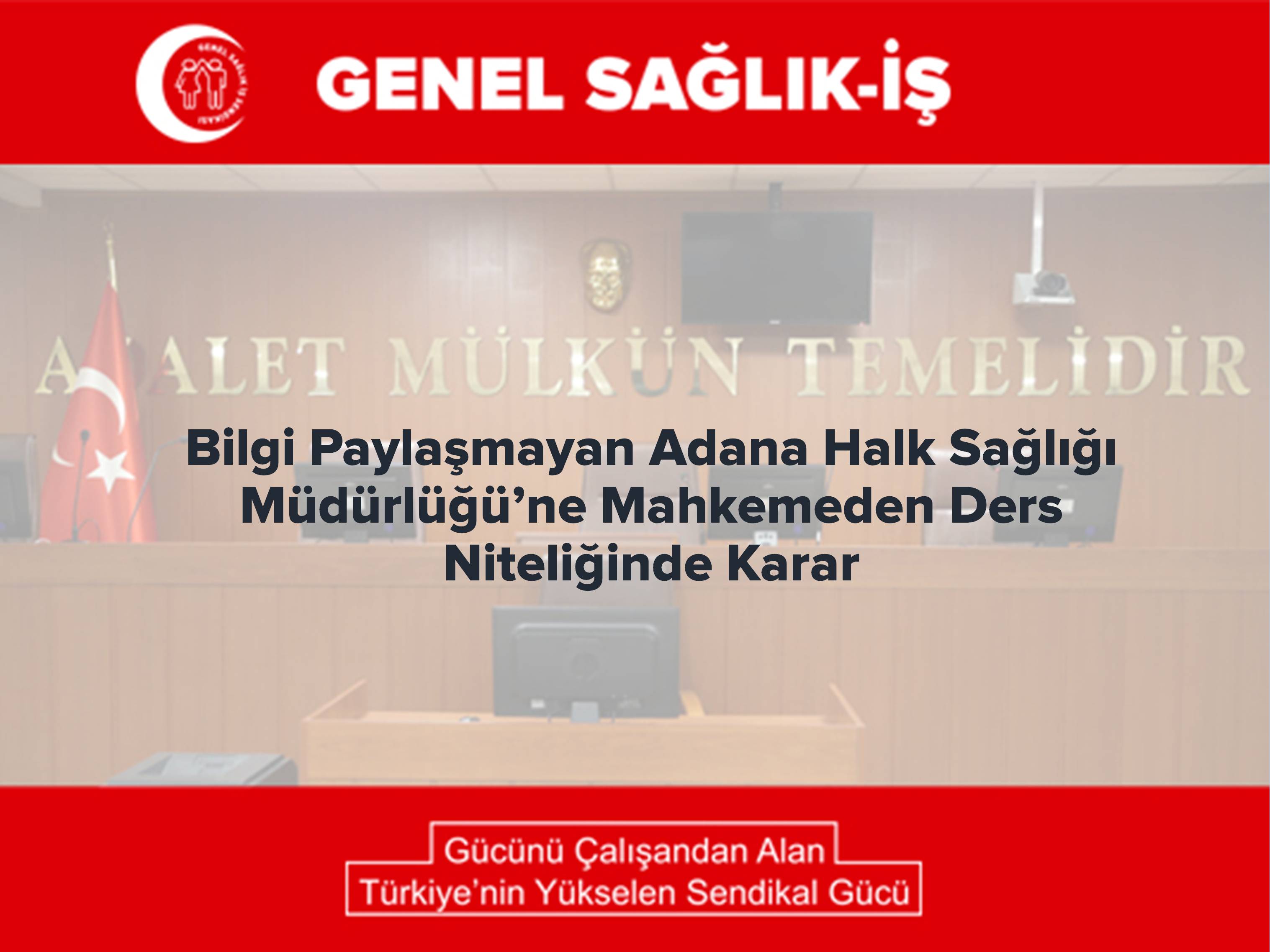 Sendikamızın, 4982 sayılı Bilgi Edinme Hakkı Kanunu kapsamındaki talebi, Adana Halk Sağlığı Müdürlüğünün 26.01.2017 tarih ve E.73 sayılı yazısı ile “4982 sayılı yasanın 25. maddesi gerekçe gösterilerek” reddedilmiştir. Adana Halk Sağlığı Müdürlüğü’nün hukuka aykırı ret kararına karşı tarafımızca Başbakanlık Bilgi Edinme Değerlendirme Kurulu nezdinde itiraz yoluna başvurulmuştur.