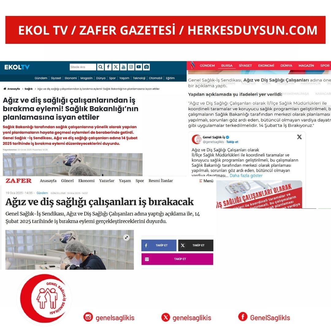 getirdi. Genel Sağlık -İş Sendikası, Ağız ve diş sağlığı çalışanları adına 14