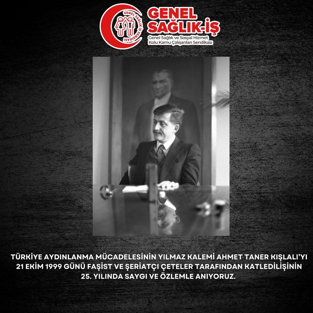 Türkiye Aydınlanma mücadelesinin yılmaz kalemi, Atatürk ilke ve devrimlerinin korkusuz savunucusu Ahmet Taner Kışlalı 21 Ekim 1999 günü faşist ve şeriatçı çeteler tarafından katledilmiştir.
