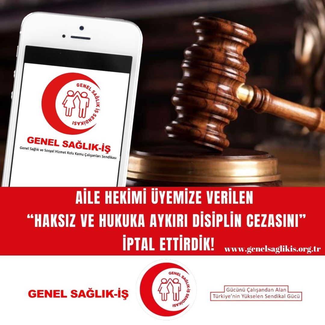 Süreçteki savunmalarımız, İzmir 7. İdare Mahkemesi tarafından dikkate alınarak, üyemize verilen haksız ve hukuka aykırı disiplin cezasının İPTALİNE karar verilmiştir. Her zaman söylediğimiz gibi, üyelerimize karşı yapılan haksız ve hukuka aykırı tüm işlemlerde, karşınızda GENEL SAĞLIK-İŞ’i bulacaksınız!
