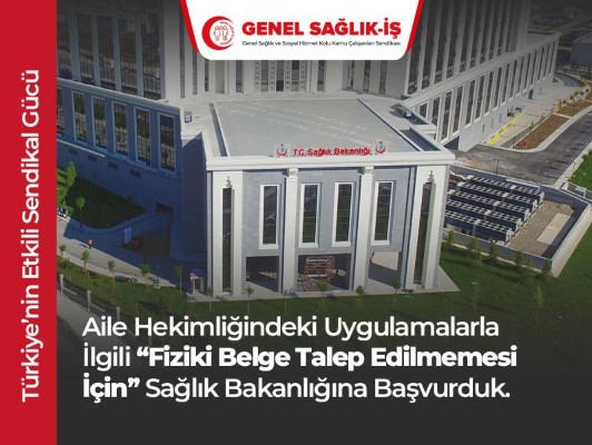 Genelgeye rağmen fiziki belge istenilmesinin “gereksiz bir iş yükü olarak ortaya çıkması” nedeniyle; “sağlık emekçilerinin, sağlık hizmeti sunumunu kesintisiz, etkin ve verimli bir şekilde gerçekleştirmesinin sağlanması” ve “angarya yasağına aykırı iş ve işlemlerin önlenmesi” için konuyla ilgili olarak Sağlık Bakanlığı nezdinde başvuru yapılmıştır. Başvurumuzda, “30.06.2010 tarihli 2010/48 sayılı Bakanlığınız Genelgesi’nde belirtilen düzenlemeler doğrultusunda “aile hekimliğinde yapılan iş ve işlemler ile ilgili fiziki belge talep edilmemesi” hususunda gerekli işlemlerin yapılması, Bakanlık personeli ile İl Sağlık Müdürlükleri personelinin bu konuda bilgilendirilmesi için gerekli tedbirlerin alınması” talep edilmiştir.