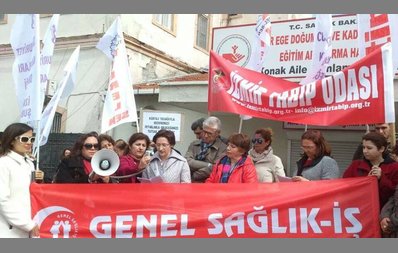 Genel Sağlık-İş İzmir Şubesi, İzmir Tabip Odası, Türk Hemşireler Derneği İzmir Şubesi, Cumhuriyet Kadınları Derneği İzmir Şubesi, Çağdaş Yaşamı Destekleme Derneği İzmir Şubesi, Ebeler Derneği İzmir Temsilcisi ve Birleşik Kamu-İş Konfederasyonumuza bağlı sendikalar Eğitim--İş , Büro İş , Tüm Yerel Sen destek verdi. Katılan örgütler adına İzmir Tabip Odası Başkanı Dr. Suat Kaptaner konuşma yaptı. Katılan kurum temsilcileri de birer konuşma yaptı. Genel Sekreterimiz Zekiye Bacaksız'ın basın açıklaması ; AKP Bedenimizden Hastanemizden Elini Çek!