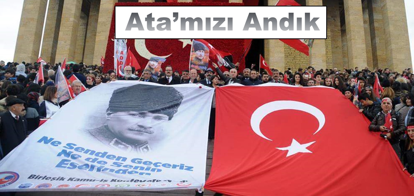 Ebediyete intikalinin 78. Yıldönümünde Türkiye Cumhuriyeti’nin Kurucusu Ulu Önder Mustafa Kemal Atatürk’ü anmak, kurduğu Cumhuriyete ve yönetim sistemine sahip çıkmak için Ankara’da Tandoğan Meydanı’nda toplandık. Saat 8:30’da başlayan törene sendikamız Genel Başkanı Zekiye Bacaksız’ın yanı sıra, Konfederasyonumuz Birleşik Kamu-İş Genel Başkanı Hasan Kütük, Genel Sekreteri Mücahit Dede, Genel Özlük Hukuk ve TİS Sekreteri Engin ÇOĞAL, Genel Eğitim, Basın-Yayın Sekreteri Semra Pektopal, sendikaların MYK üyeleri ve şube yöneticileri ile çok sayıda üye katıldı.