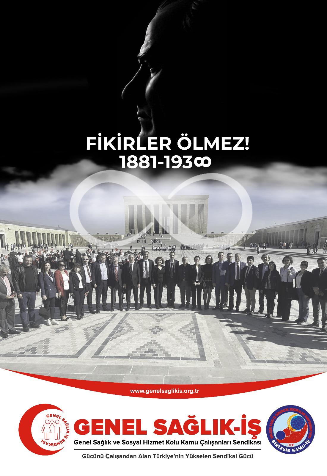 Sendikamız Genel Sağlık-İş, ebedi önderimiz Atatürk’ün bizlere emanet ettiği bağımsız Türkiye Cumhuriyeti’ni, korumak ve yükseltmek için tüm çabayı kararlılıkla sürdürecektir. Açtığı yolda, gösterdiği hedefe hiç durmadan yürüyeceğimize ant içiyor, Ebedi Önderimiz Mustafa Kemal Atatürk’ün aziz hatırası önünde saygıyla eğiliyoruz.