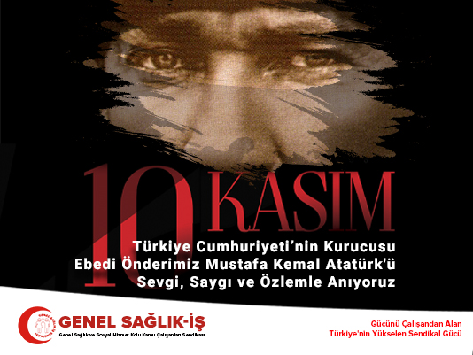 Genel Sağlık-İş, ebedi önderimiz Atatürk’ün bizlere emanet ettiği bağımsız Türkiye Cumhuriyeti’ni, korumak ve yükseltmek için tüm çabayı kararlılıkla sürdürecektir. Açtığı yolda, gösterdiği hedefe hiç durmadan yürüyeceğimize ant içiyor, Ebedi Önderimiz Mustafa Kemal Atatürk’ün aziz hatırası önünde saygıyla eğiliyoruz.