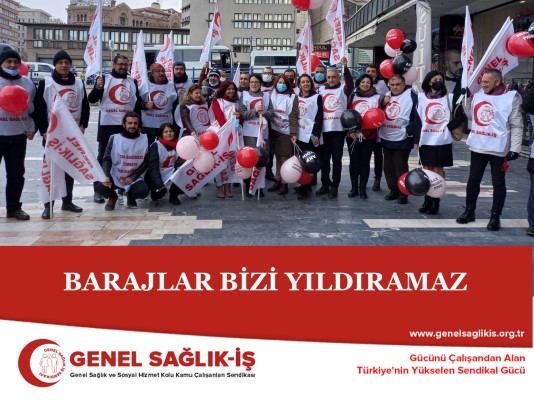 Her geçen gün hızla üye kaybeden ve sendikamız Genel Sağlık İş’in yükselişini ‘’çaresizce’’ izleyen sarı sendikalar, yetkiyi kaybetme korkusuyla siyasilere baskı yaparak antidemokratik uygulamaları dayatmaya çalışmaktadırlar. Genel Sağlık İş’in hiçbir baraj sınırlamasıyla sorunu bulunmamaktadır. Fakat bu antidemokratik uygulama, Anayasa ve Uluslararası Sözleşmelerde düzenlenen ‘’sendikal faaliyette bulunma ve örgütlenme özgürlüğüne’’ açıkça aykırı olup bir çok sendika bakımından sendikal faaliyetlerin yalnızca kağıt üzerinde kalmasına sebebiyet verecektir. Daha önceki %1’lik uygulamaya karşı nasıl hukuk mücadelesi verip, ‘’haddini bilmezlere, hukuk tanımazlara, hukuku ayaklar altına almaya teşebbüs edenlere’’ hukuk dersi verdiysek, %2’lik garabet ve fecaat niteliğindeki bu uygulamaya karşı da elimizden gelenin fazlasını yaparak meydanlarda ve yargı mercilerinde gerekli hukuk mücadelesini YİNE vereceğiz.