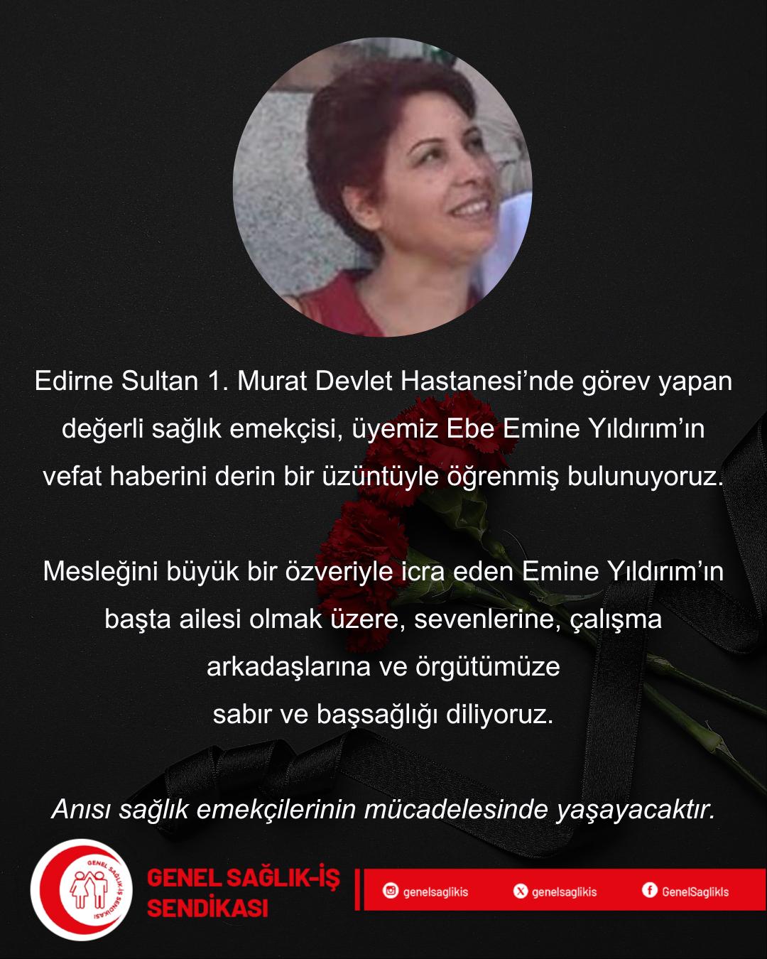 Emine Yıldırım’ın vefat haberini derin bir üzüntüyle öğrenmiş