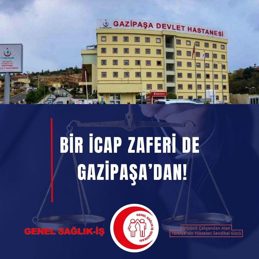 Bu kez de Antalya İli Gazipaşa Devlet Hastanesi’nde “diyaliz teknikeri” olarak görev yapmakta olan üyemiz tarafından, Sendikamıza yapılan başvuruda, “icap nöbet görevi verildiği, fakat icap nöbet görevinin yerine getirilmesine rağmen icap nöbet ücretlerinin ödenmediği, idareye yapılan başvurularda, icap nöbet ücretinin ödenmesine yönelik taleplerinin reddedildiği” belirtilmiştir. Söz konusu hukuka aykırı idari işlemin iptali ile icap nöbet ücretlerine ilişkin hak edişlerinin yasal faiziyle birlikte üyemize ödenmesi için Hukuk Müşavirliğimizin girişimleri ile Antalya 2. İdare Mahkemesi’nde dava açılmıştır.
