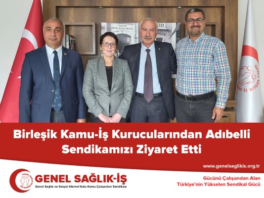 Birleşik Kamu-İş Örgütlenme Sekreteri Kütük ve Birleşik-Kamu-İş Kurucularından Adıbelli, Sendikamız Genel Sağlık-İş Genel Başkanı Derya Uğur ve yeni seçilen Merkez Yönetim Kuruluna hayırlı olsun ziyaretinde bulundu.