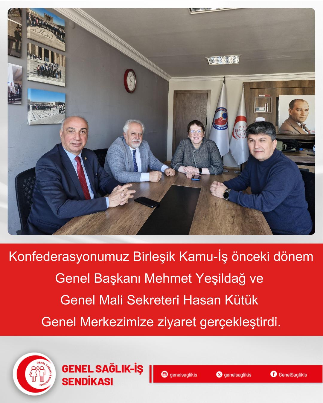 Konfederasyonumuz Birleşik Kamu-İş önceki dönem Genel Başkanı Mehmet Yeşildağ ve Genel Mali Sekreteri Hasan Kütük Genel Merkezimize ziyaret gerçekleştirdi.