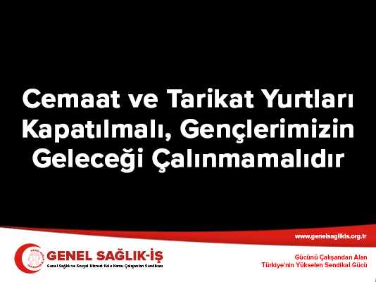 Cemaat ve tarikat yurtlarının kapatılması için daha kaç çocuğun, gencin yitip gitmesi gerekmektedir. Cemaat ve tarikatlar dar gelirli ailelerin çocukları için alternatif olmaktan çıkarılmalıdır. Laik Türkiye Cumhuriyeti'nde cemaat ve tarikat yurtları olamaz! Cemaat ve tarikat yurtları derhal kapatılmalıdır. Öğrencilerimizin beslenme ve barınma hakkı bir anayasal hak ve sorumluluktur. Gençlerimize çağdaş ve bilimsel yurt imkânları sağlanmalıdır.