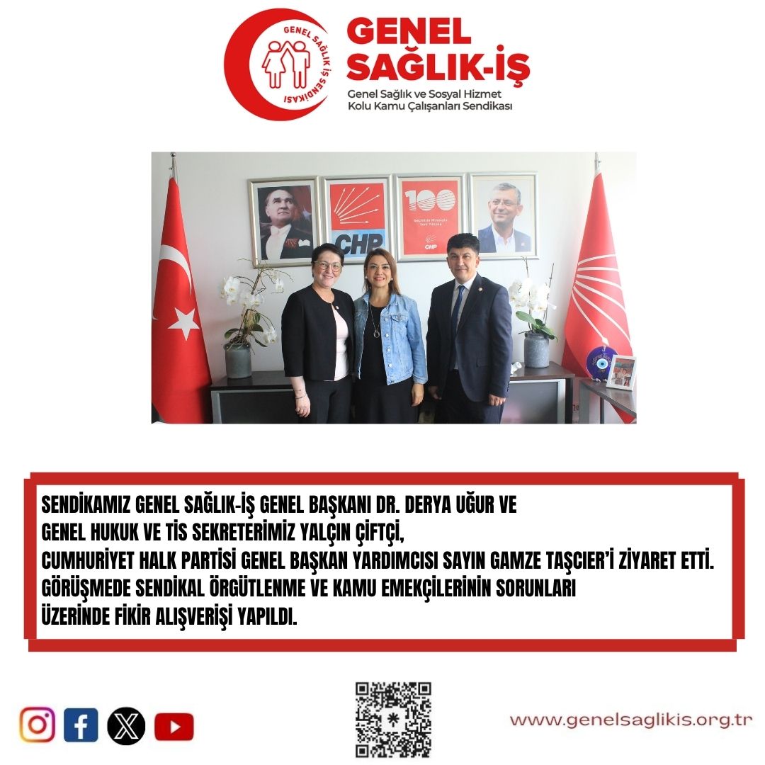 Yardımcısı Sayın Gamze Taşcıer’i ziyaret etti. Görüşmede sendikal örgütlenme ve