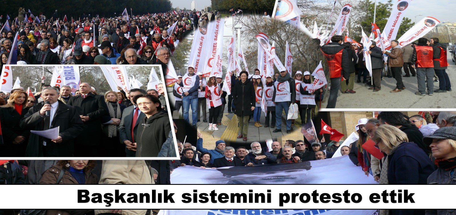 Anıtkabir Tandoğan kapısı önünde toplanıp, başkanlık sistemine karşı ortak bir açıklama yaptık. Başkanlık sistemine karşı halkın vereceği tepkiden korkulmasının yasağın asıl sebebi olduğu belirtilen konuşmalarda Başkanlık sisteminin Türkiye’yi bölünmeye götüreceği vurgulandı.