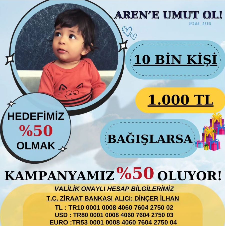 Küçük Aren, SMA hastası bir çocuk ve yardımınıza ihtiyacı var. Bizler, örgütlü gücümüzle onun yanındayız. Tüm sağlık ve sosyal hizmet çalışanlarına, tüm yurttaşlarımıza çağrımızdır: Aren'imize destek olalım. Birlikte, umudu büyütebiliriz.