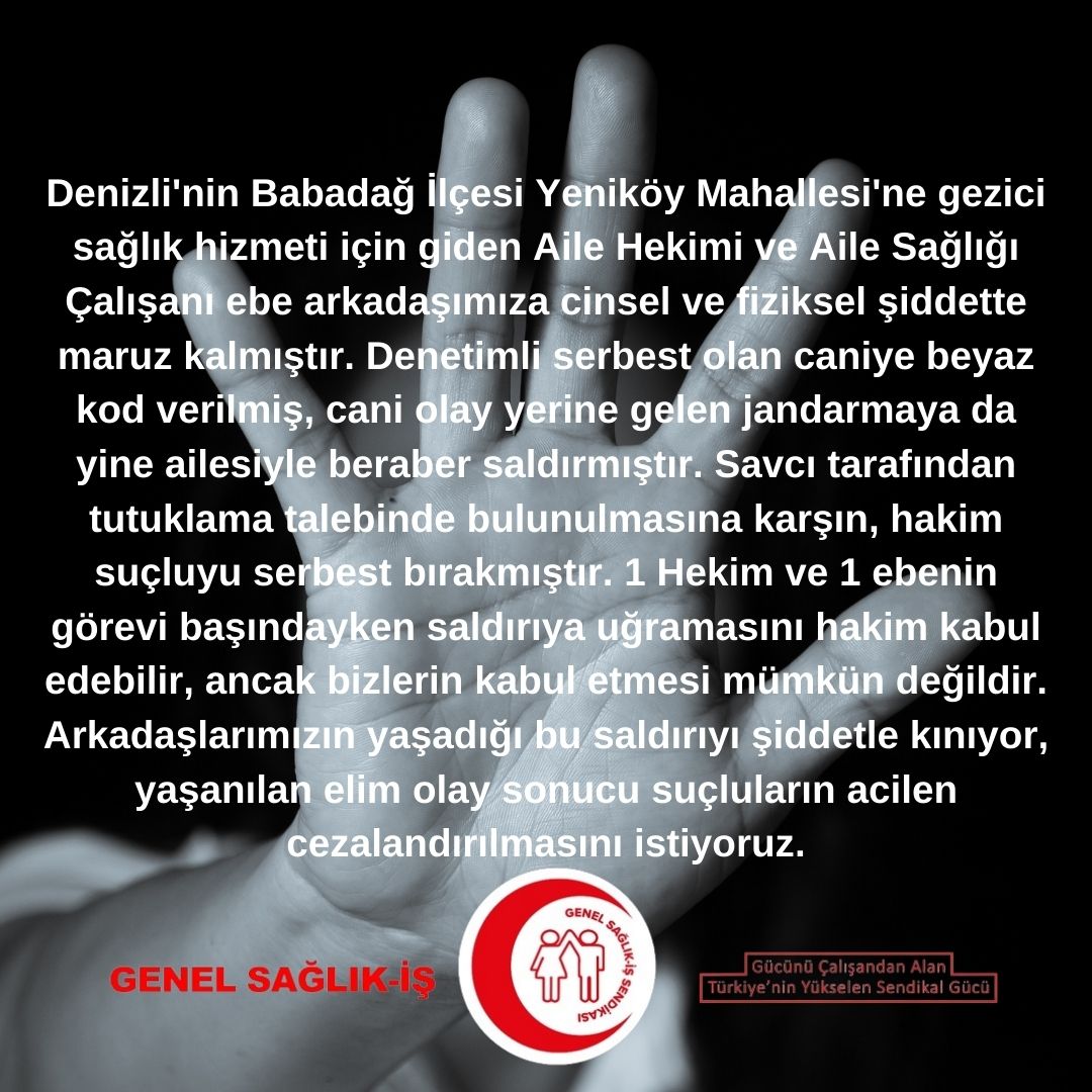 suçluyu serbest bırakmıştır. 1 Hekim ve 1 ebenin görevi başındayken saldırıya