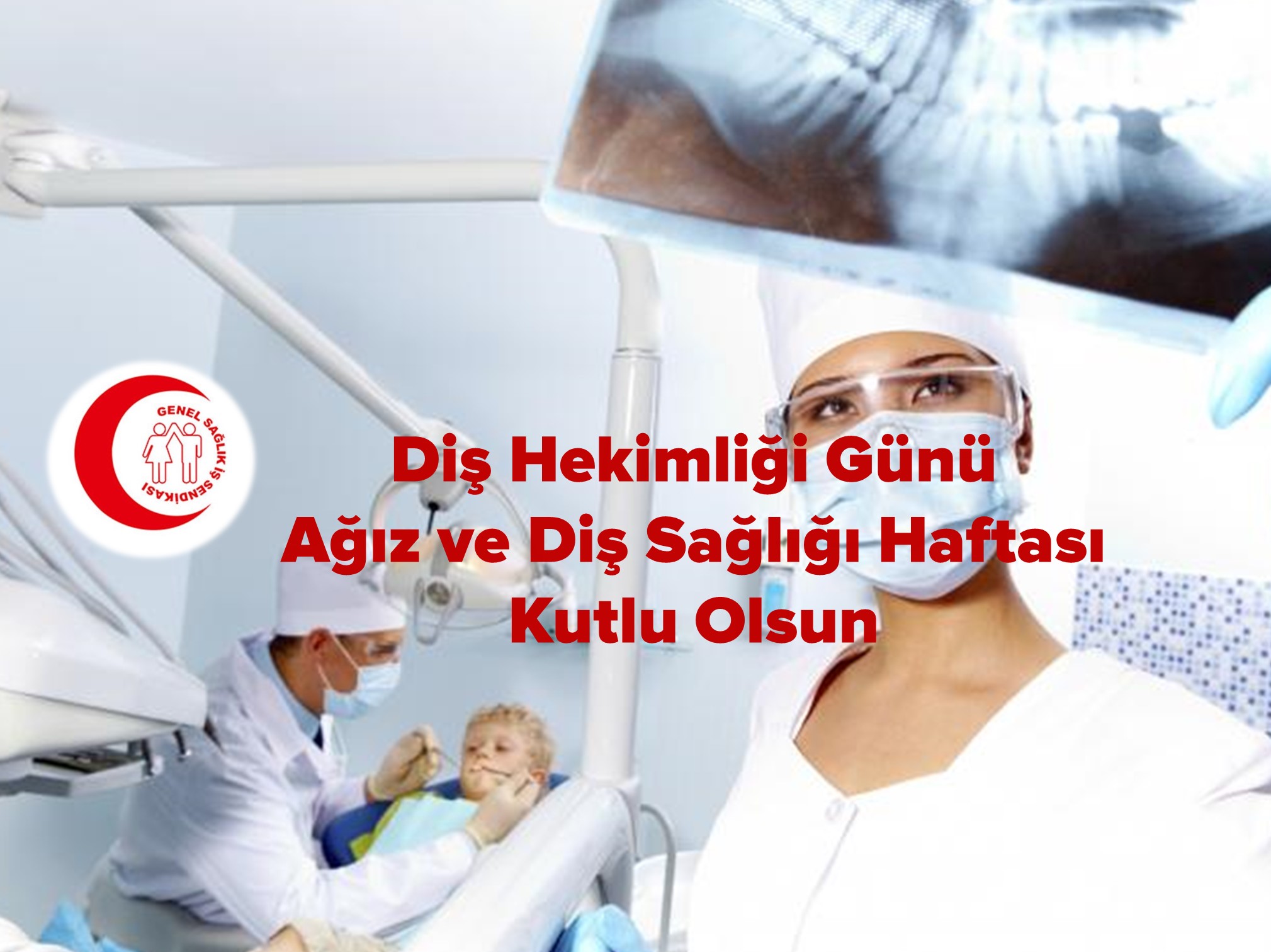 Genel Sağlık-İş olarak, insan onuruna yaraşır yaşam ve çalışma koşullarının sağlanması için birlikte mücadele dileğiyle ağız ve diş sağlığı merkezlerinde, ağız ve diş sağlığı hastanelerinde ve hastanelerin diş kliniklerinde görevli tüm sağlık çalışanlarının Diş Hekimliği Gününü ve Ağız ve Diş Sağlığı Haftasını kutlarız.