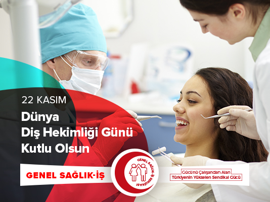 Genel Sağlık-İş olarak, insan onuruna yaraşır yaşam ve çalışma koşullarının sağlanması için birlikte mücadele dileğiyle ağız ve diş sağlığı merkezlerinde, ağız ve diş sağlığı hastanelerinde ve hastanelerin diş kliniklerinde görevli tüm sağlık çalışanlarının Diş Hekimliği Gününü ve Ağız ve Diş Sağlığı Haftasını kutlarız.