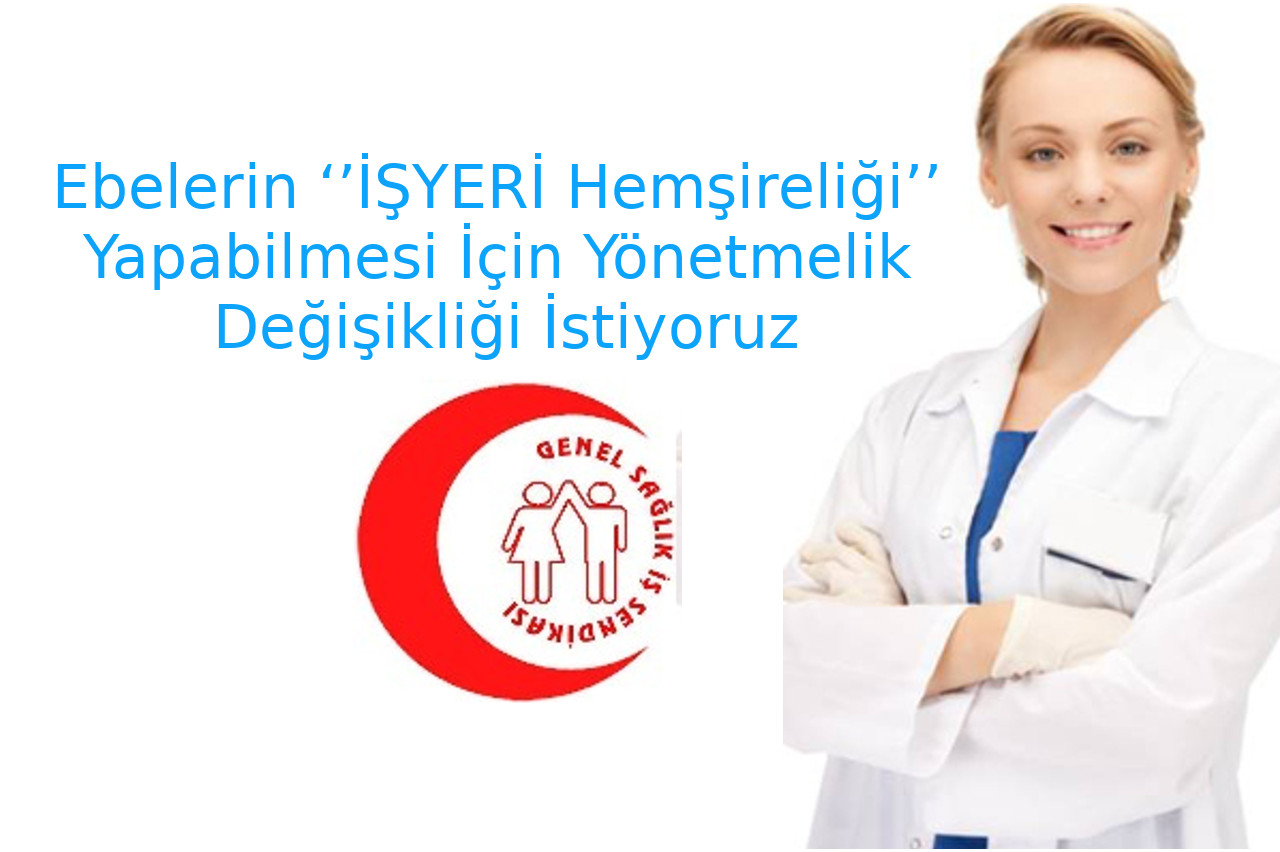 Ebelerin İşyeri Hemşireliği yapabilmesi için ilgili yönetmeliğin 4. maddesine İşyeri Hemşiresi (Diğer Sağlık Personeli) olacak kişilere ‘’ebe’’ eklenerek değişiklik yapılması, Ebelere İşyeri Hemşireliği hakkının verileceği bir düzenleme olacaktır.
