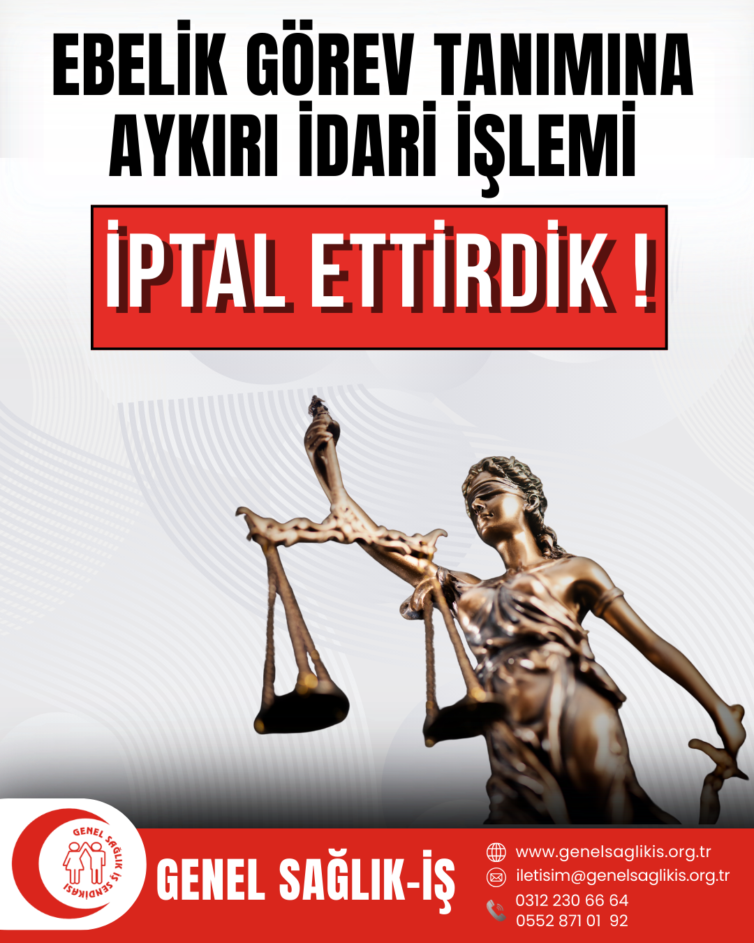 İdarenin unuttuğu bir husus vardır ki, Genel Sağlık-İş, hukuka aykırı idari işlemler nedeniyle mağduriyet yaşayan tüm üyelerinin yanında olup, bu anlamda hukuk mücadelesi vermekten, “görev tanımından bihaber, hukuku ayaklar altına alma girişiminde bulunan, takdir yetkisini yanlış anlayan” idarelerin ve idarecilerin daima karşısında olmuştur. Olmaya da devam edecektir!