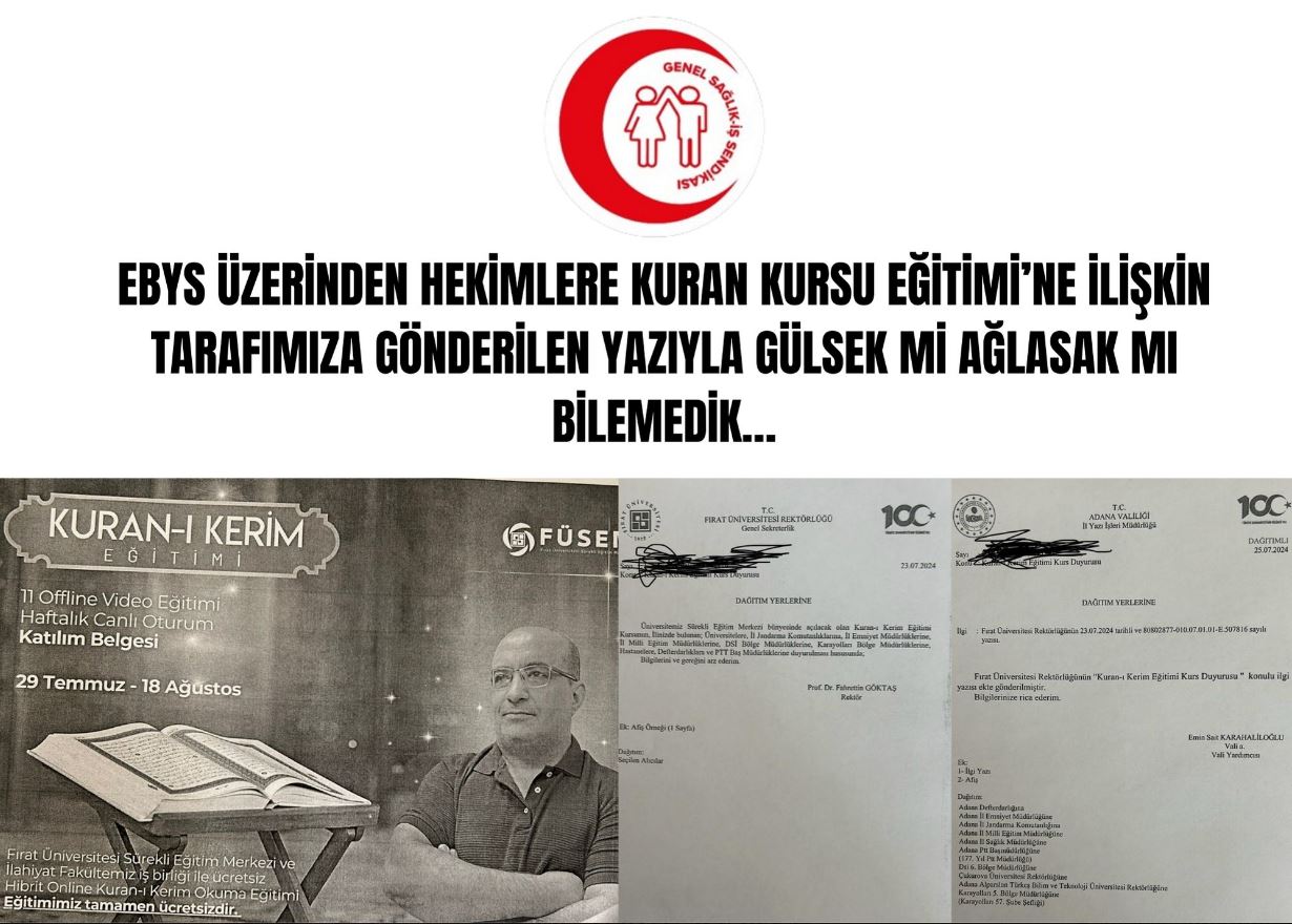 EBYS üzerinden hekimlere Kuran Kursu Eğitimi’ne ilişkin tarafımıza gönderilen yazıyla gülsek mi ağlasak mı bilemedik…
