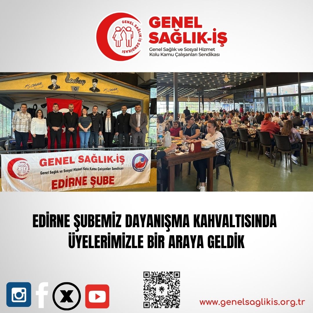 Sendikamız Genel Sağlık-İş Edirne Şubesi tarafından Keşan’da dayanışma kahvaltısı düzenlendi. Düzenlenen etkinliğe Sendikamız Genel Sağlık-İş Genel Sekreteri Veli Can Karabacak, Genel Örgütlenme Sekreteri Özcan Arslan, Çanakkale İl Başkanımız Ali Doğan Karacık ve İl Temsilcilik Yönetimi katıldı.