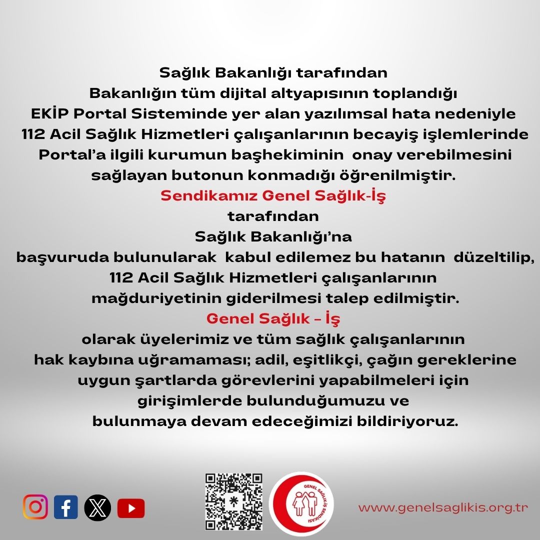 EKİP Portal Sistemindeki yazılımsal hatanın düzeltilmesi için Sağlık Bakanlığı'na başvuruda bulunduk
