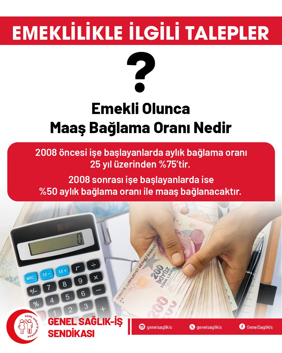 2008 sonrası işe başlayanlarda ise %50 aylık bağlama oranı ile maaş bağlanacaktır.