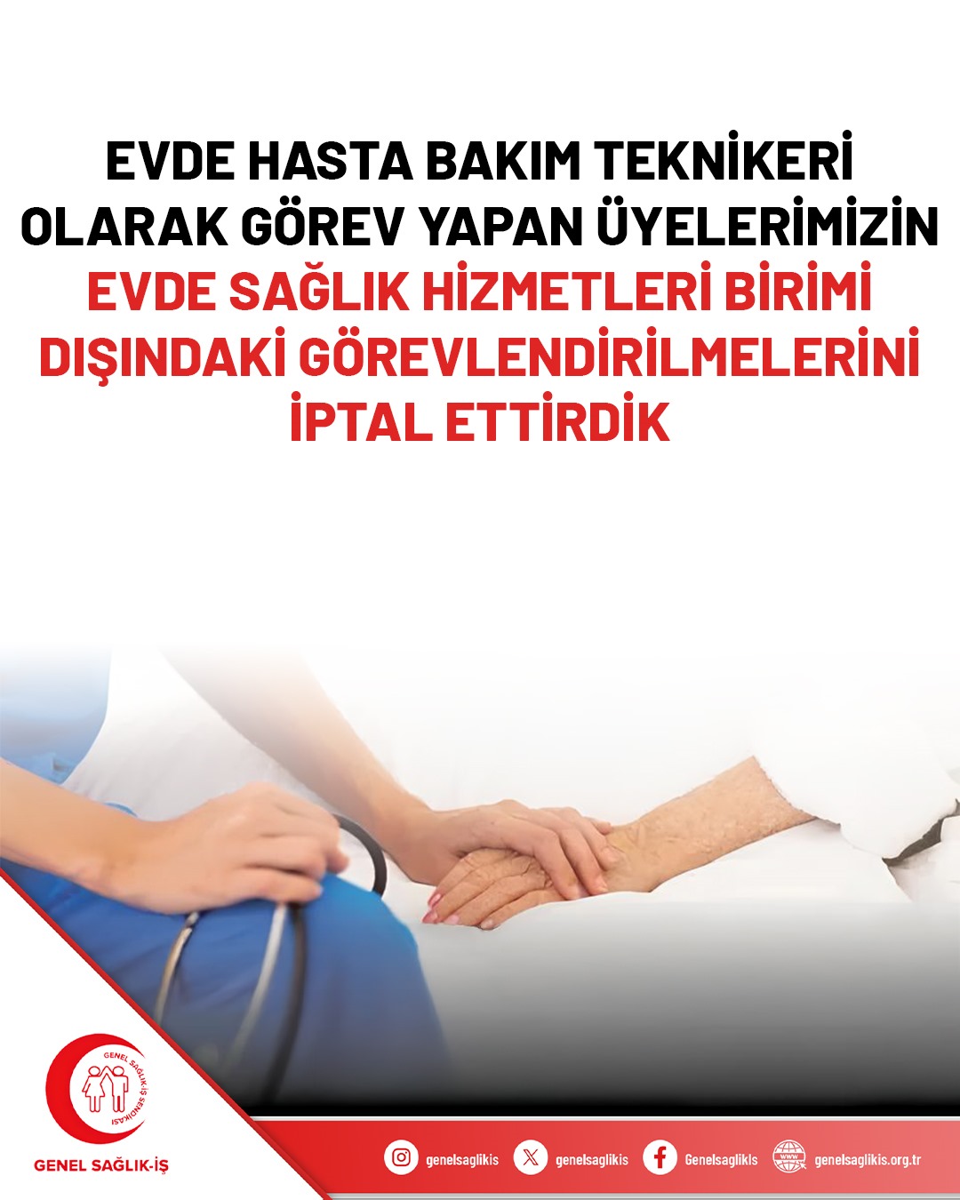 Evde Hasta Bakım Teknikeri Olarak Görev Yapan Üyelerimizin Evde Sağlık Hizmetleri Birimi Dışındaki Görevlendirilmelerini İptal Ettirdik ⬇️