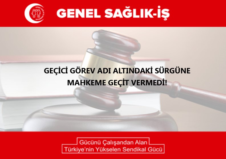 Sendikamız ilçe temsilcisinin 8 ay boyunca başka bir ilçeye geçici görev adı altında sürgüne gönderilmesi işlemine karşı Sendikamızca hemen Kayseri İdare Mahkemesi’nde yürütmenin durdurulması talepli iptal davası açılmıştır. Mahkemece işlemin açıkça hukuka aykırı olduğu tespiti yapılarak sürgünün yürütmesi durdurulmuştur.