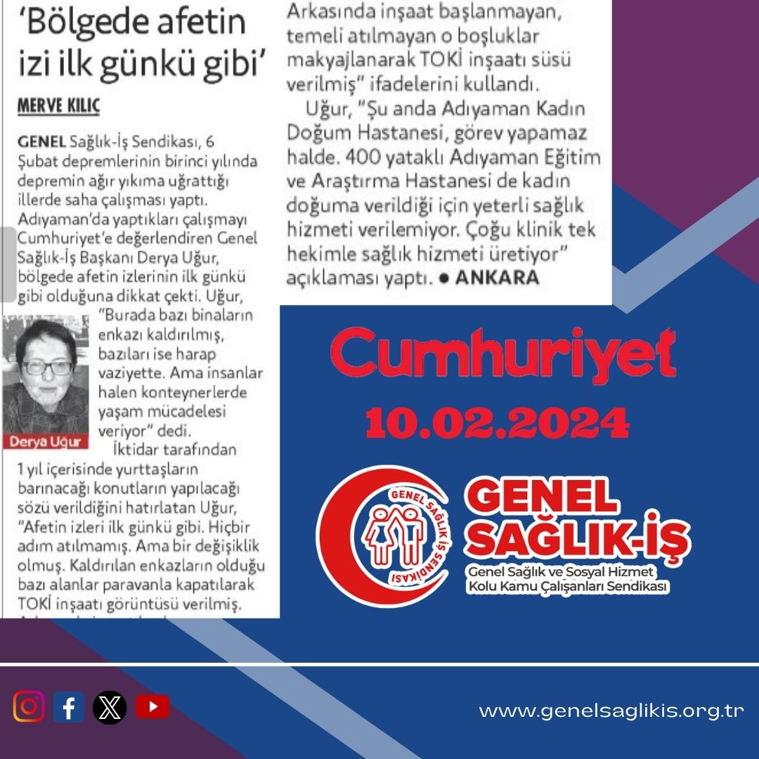 Cumhuriyet: https://www.cumhuriyet.com.tr/saglik/genel-saglik-is-baskani-derya-ugur-bolgede-afetin-izi-ilk-gunku-gibi-2173723?utm_medium=HaberKaynagi&utm_source=HaberKaynagi