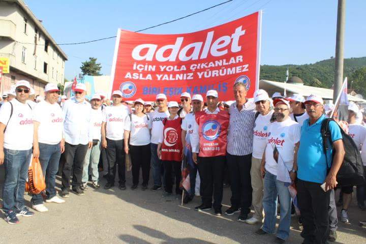 CHP Genel Başkanı Kemal Kılıçdaroğlu’nun Adalet Yürüyüşünün on altıncı gününde Sendikamız Genel Başkanı Zekiye Bacaksız, Konfederasyonumuz Birleşik Kamu-İş Genel Başkanı Hasan Kütük ve Yönetim Kurulu Üyeleri, bağlı sendikaların Merkez Yönetim Kurulu üyeleri ve üyeler yer aldı.