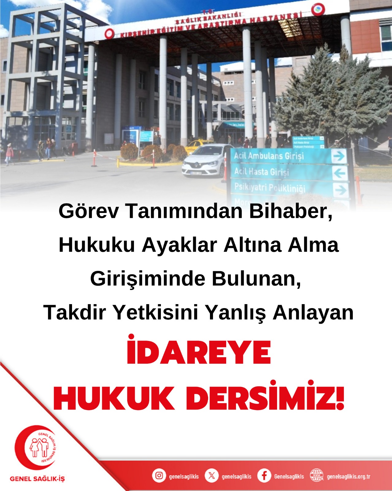 İdarenin unuttuğu bir husus vardır ki, Genel Sağlık-İş, hukuka aykırı idari işlemler nedeniyle mağduriyet yaşayan tüm üyelerinin yanındadır. “Görev tanımından bihaber, hukuku ayaklar altına alma girişiminde bulunan, takdir yetkisini yanlış anlayan” idarelerin ve idarecilerin daima karşısında olmuştur. Olmaya da devam edecektir!