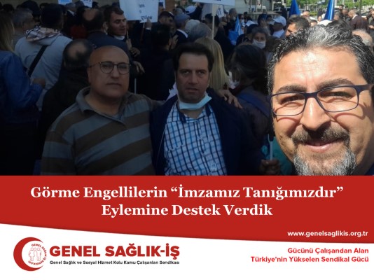Türkiye Körler Federasyonu, Engelsiz Erişim Derneği, Görme Engelli Evrensel Hukukçular Derneği, Eğitimde Görme Engelliler Derneği, Ankara, İstanbul, İzmir, Denizli, Bursa Baroları, Sesli Betimleme Derneği tarafından düzenlenen ve Türkiye Noterler Birliği’nin Ankara Söğütözü’ndeki yerleşkesinin önünde yapılan basın açıklamasına Sendikamız Genel Sağlık-İş Genel Sekreteri Gazi Çeliker de destek verdi.