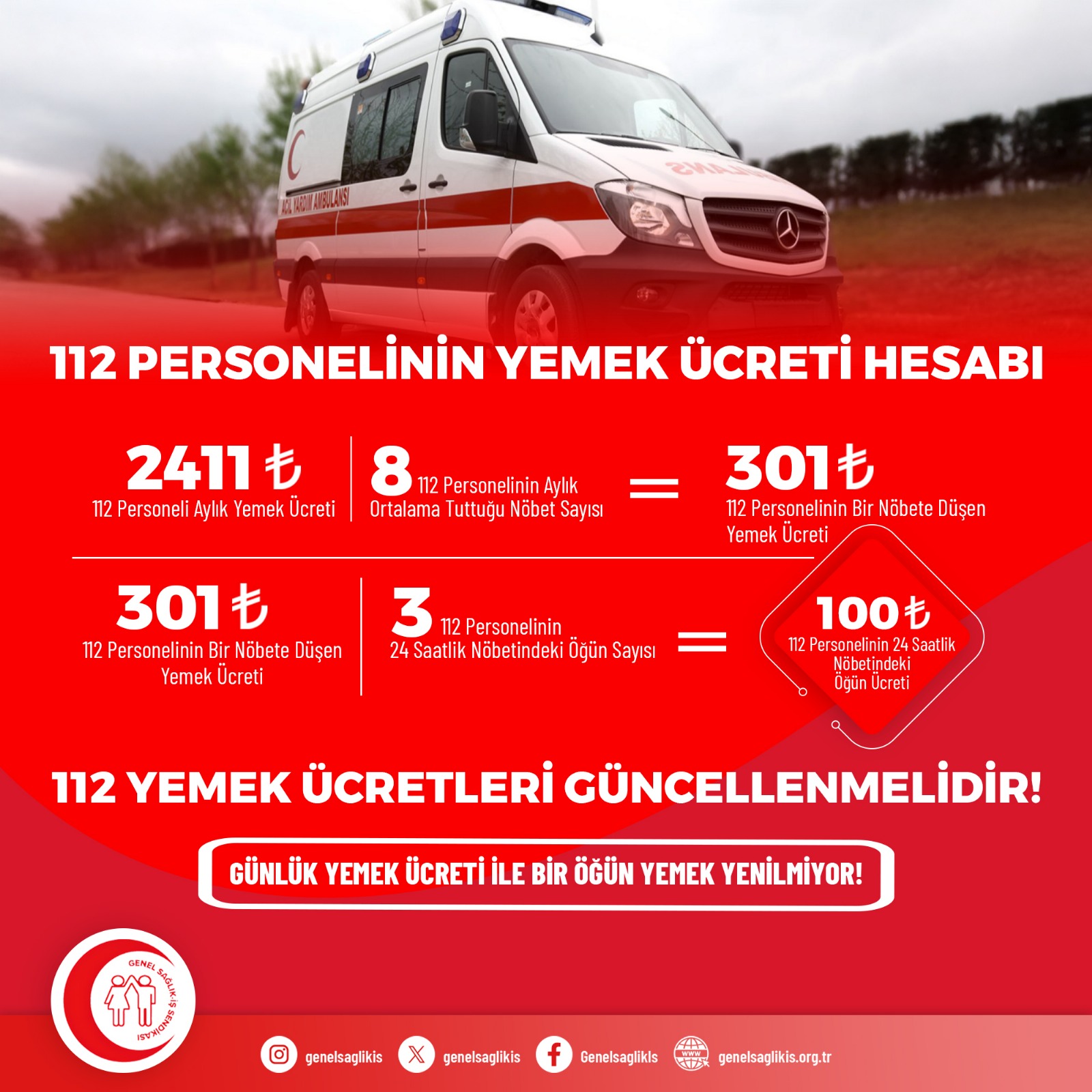 112 Personeli Aylık Yemek Ücreti 2411 TL