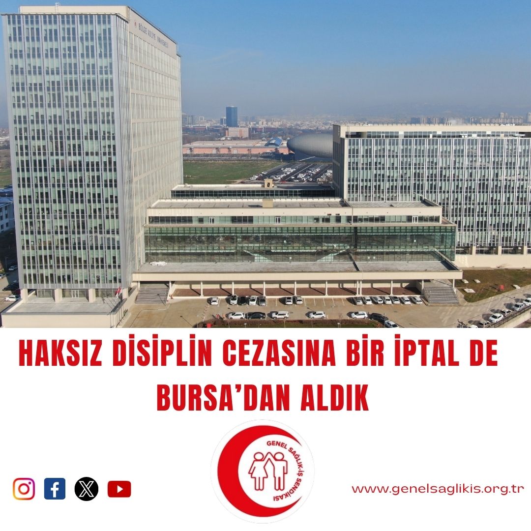 Süreçteki savunmalarımız, Bursa 4. İdare Mahkemesi tarafından dikkate alınarak, üyemize verilen haksız ve hukuka aykırı disiplin cezasının İPTALİNE karar verilmiş durumdadır. Her zaman söylediğimiz gibi, üyelerimize karşı yapılan haksız ve hukuka aykırı tüm işlemlerde, karşınızda GENEL SAĞLIK-İŞ’i bulacaksınız! Kazanan yine Genel Sağlık-İş; yine Genel Sağlık-İş üyesi olmuştur!